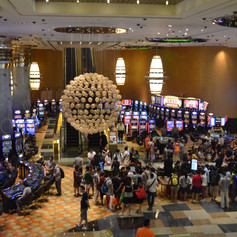 Retour vers Macau, après avoir digéré au bord de la plage, pour attendre la tombée de la nuit et découvrir les casinos et hôtels illuminés. A côté des rues et buildings à l'abandon, les constructions luxuriantes font rêver.