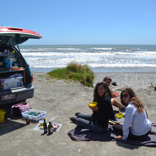 Après un pique-nique au bord de l'eau, on se dirige vers les célèbres Pancakes Rock. L'eau qui claque contre les rochers procure un spectacle incroyable. On reprend la route en direction du parc national d'Arthur Pass après avoir fait quelques courses pour notre apéro du soir. Au menu : tartines de foie gras, saucisson et salade. Qu'est ce que ça fait du bien de manger de bons produits de chez nous !