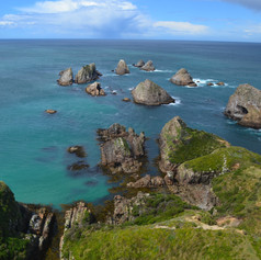 Puis on se rend au phare de Nugget Point. La falaise y est très reconnaissable avec ses nombreuses petites montagnes sortant de l’eau juste à la pointe du phare. L’eau d’un bleu parfait et le décor autour, en font un véritable lieu de carte postale.